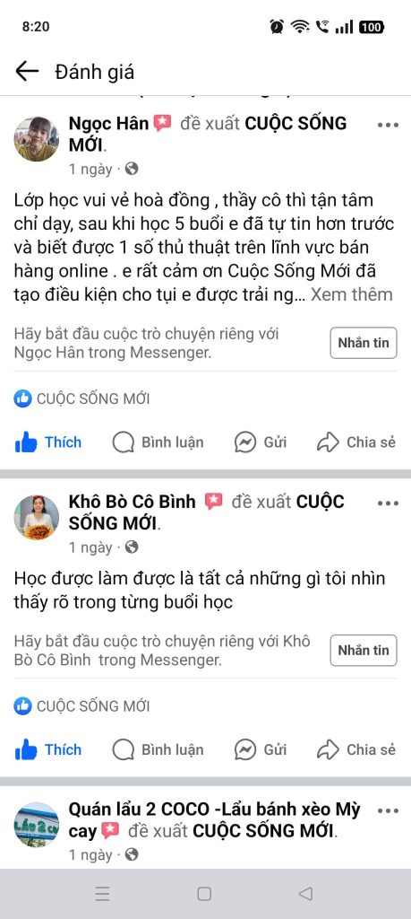 “Trước khi học, mình luôn nghĩ bán hàng online là thứ gì đó rất khó và chỉ dành cho người giỏi. Nhưng khi bắt đầu, mình nhận ra điều khó nhất không phải là kỹ thuật — mà là dám tin mình có thể làm được. Ngày có đơn hàng đầu tiên, cảm giác vui đến mức không ngủ được. Không chỉ vì tiền, mà vì lần đầu tiên mình thấy bản thân thật sự làm được một điều lớn. Khóa học không chỉ dạy mình cách bán hàng, mà còn cho mình sự tự tin để bước ra khỏi vùng an toàn.”